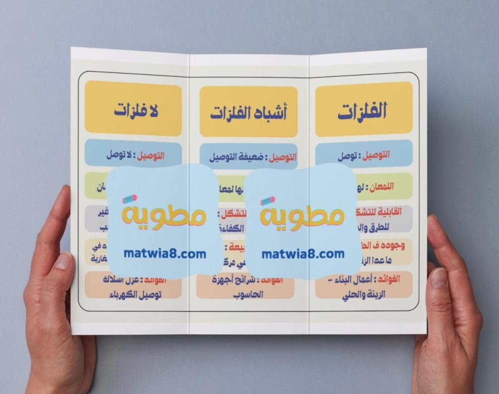 مطوية مقارنة بين الفلزات واللافلزات وأشباه الفلزات (خامس)